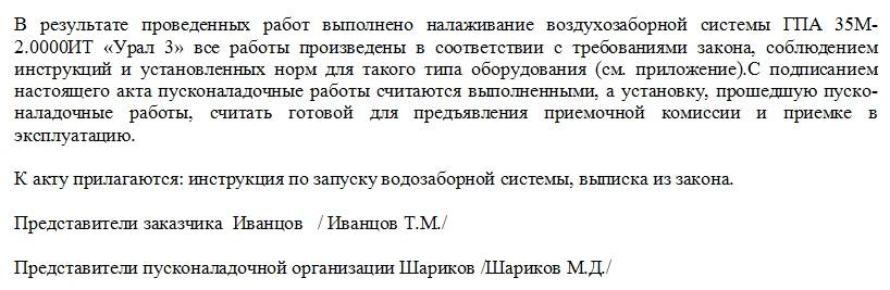 Чтобы правильно оформить акт об окончании пусконаладочных работ, необходимо создание специальной комиссии в составе не менее двух человек.