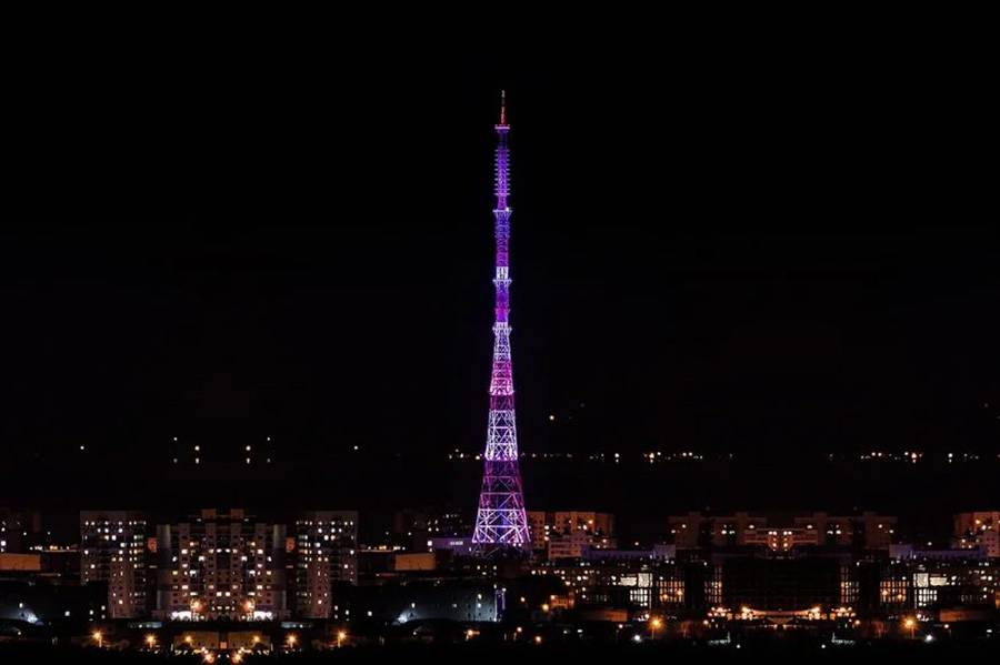 Башня высотой 226 метров – самое высокое сооружение на вечной мерзлоте в мире. Разумеется, световое оборудование для таких объектов изготавливается на заказ. Кроме того, нужно правильно рассчитать нагрузку на конструкцию и учесть монтаж системы освещения на разных высотах