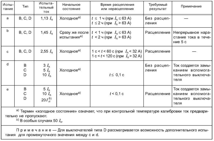 Время-токовая характеристика автоматического выключателя определяется условиями и значениями приведенными в таблице 7 ГОСТ Р 50345-2010: