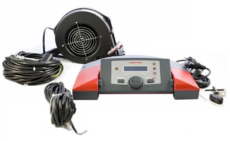 Контроллер – беспроблемная более простая модель, оснащена лишь стандартными функциями: контроль оборотов вентилятора наддува, управление циркуляционным насосом, светодиодная индикация работы элементов. Установка внешних датчиков и систем автоматической подачи также не предусмотрена. Отличный выбор, однако за цену, сравнимую с более функциональными моделями. Вентилятор представляет из себя уже описанную выше наиболее распространенную модель.
