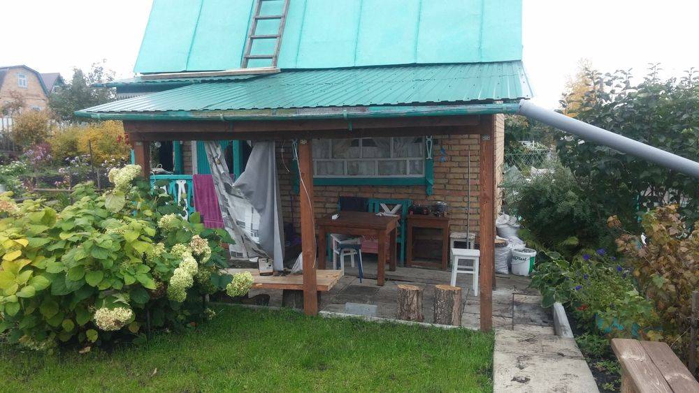Хотелось бы поделиться личным опытом строительства пристроенной к дому беседки. Проект данной постройки реализован в небольшом дачном массиве Саловка (Пензенская область). Именно там находится наша дача .