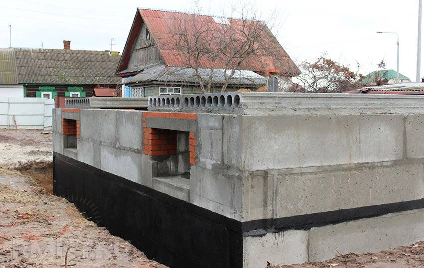 - Выполняем все необходимые работы по гидроизоляции фундамента.