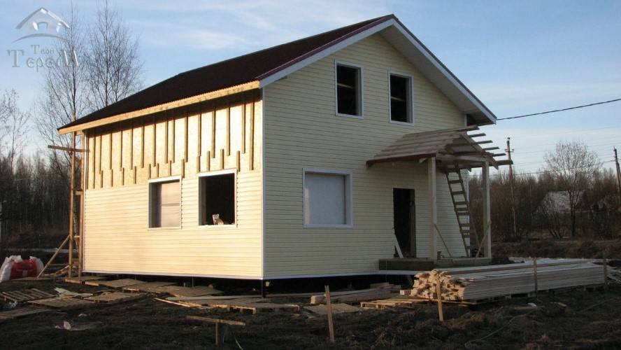 Остов из древесины несет нагрузку от стен, крыши, снега, ветра, поэтому стеновое заполнение служит только для утепления внутреннего пространства и ограждения площади дома.