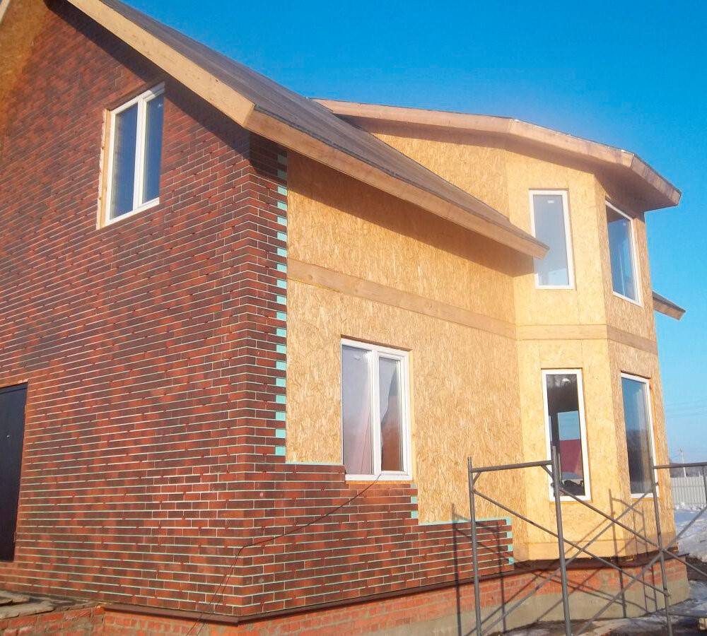 - Современные каркасные дома облицовывают материалами, которые способны взять на себя часть нагрузки. Они придают конструкции дополнительную жесткость. Основной критерий при выборе – это механическая прочность на сжатие и изгиб, отсутствие усадки.