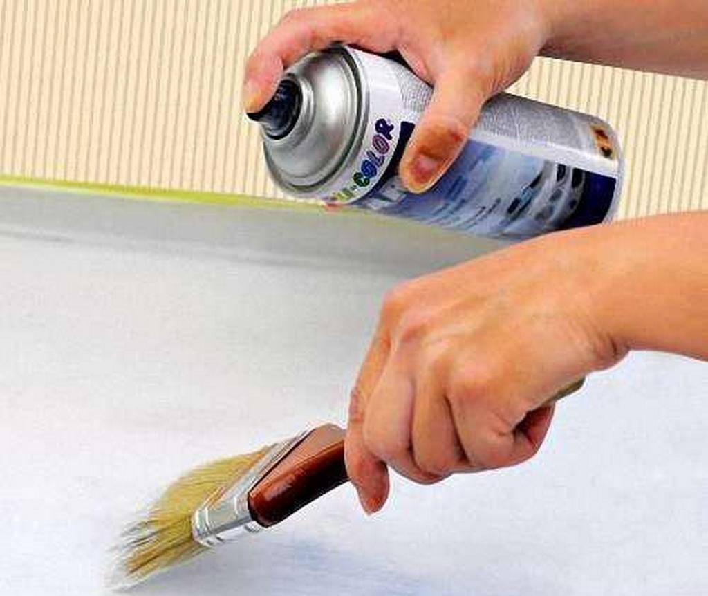 Мастера часто выбирают аэрозольную краску. Она удобна в применении. Содержимое баллончика распыляется на необходимую площадь. При этом, слой ложится равномерно.