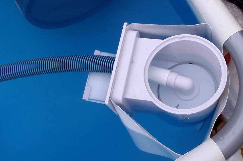 На заметку! Бассейны с большой чашей или те, которые активно используют, оснащают водным пылесосом. Его подключают к разъему скиммера. Применение упомянутого девайсам повышает скорость всасывания воды для последующей фильтрации.