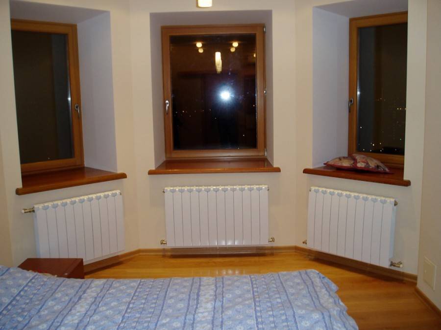 Установка радиаторов отопления осуществляется в тех местах, в которых происходят наибольшие тепловые потери, а именно под подоконниками окон. Нагретый воздух, поднимаясь, будет блокировать холодный воздух, исходящий от окна. Тем самым сохраняя тепло в доме.