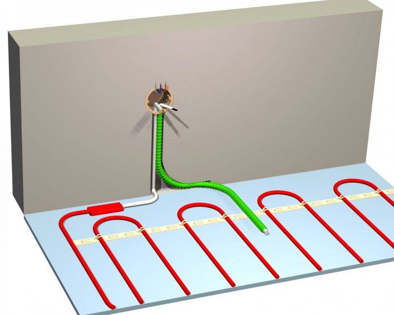 - другой край подключается к термостату, укладывается по проделанной канавке в бетоне;