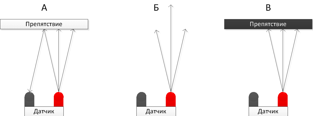 В качестве передающего устройства в оптических датчиках используются инфракрасные светодиоды, а в качестве приемника – фототранзисторы. Звуковые датчики работают в ультразвуковом диапазоне, поэтому их работа для нашего уха кажется бесшумной, однако каждый из них содержит маленький излучатель и улавливатель.