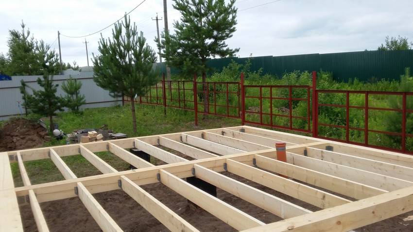 Будущий дом нужно утеплить с обеих сторон. Черновым полом будут служить трубы, уложенные поверх лаг. Справиться с проникновением холода внутрь дома поможет дерево, сверху его нужно закрыть профилем.