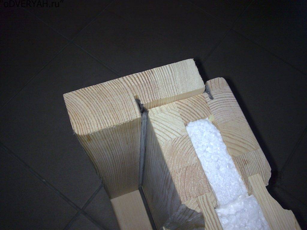 Сбор и установка дверной коробки. Поскольку в случае с парной нужно предусмотреть обустройство порога, коробка будет состоять из 4-х составляющих