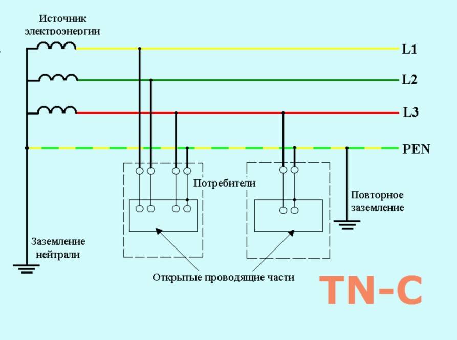 *(По этой схеме можно легко разобраться в том, как работает схема TN-C)