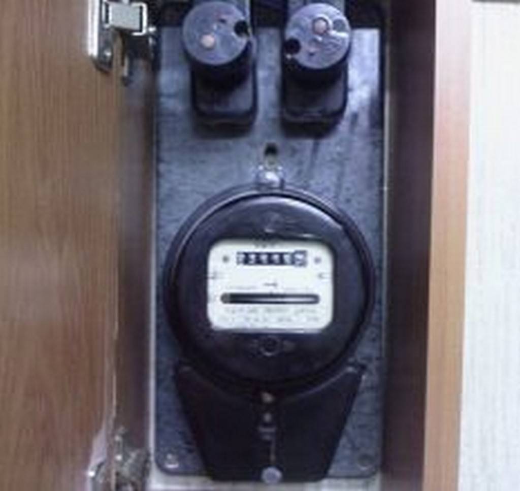 Установленные в этажном щитке измерительные счетчики дискового типа советского производства