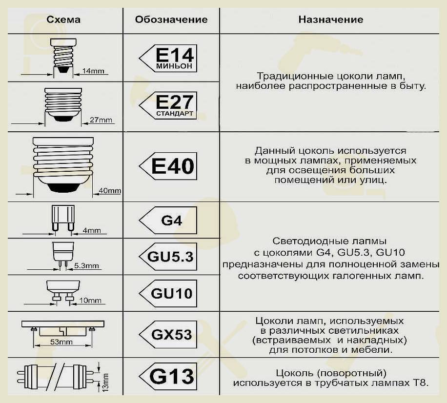 Чаще всего в наших квартирах используются патроны имеющие маркировку: