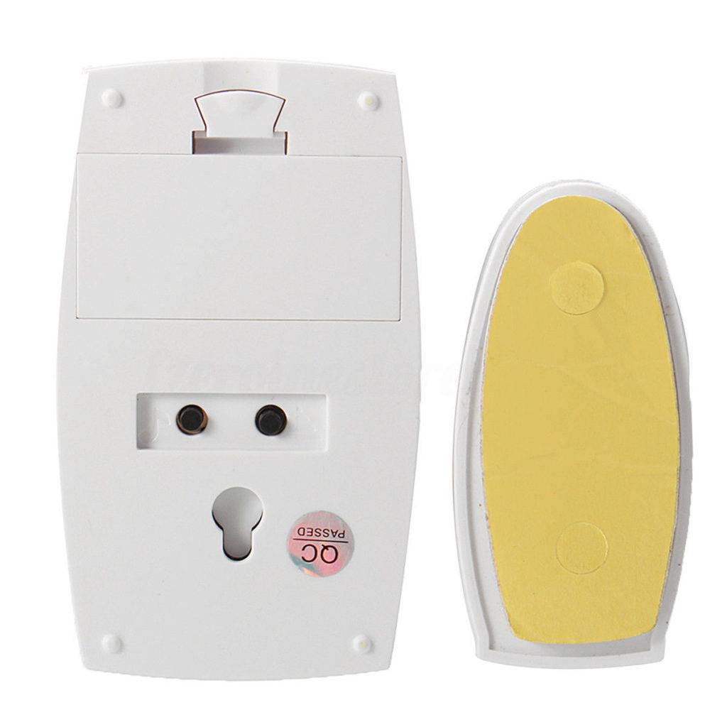 - На косяке входной двери фиксируется оформленный в виде панельки с кнопкой передатчик сигнала, также нуждающийся во встроенном элементе питания.