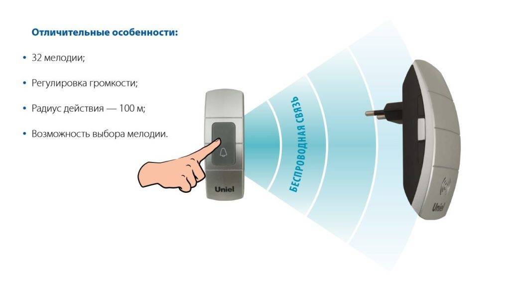 Беспроводные звонки отличаются в зависимости от радиуса действия, пылевлагоустойчивости, наличия батареек, материала и других факторов. Конечно, необходимо их учитывать в тот момент, когда вы проверяете гаджет: