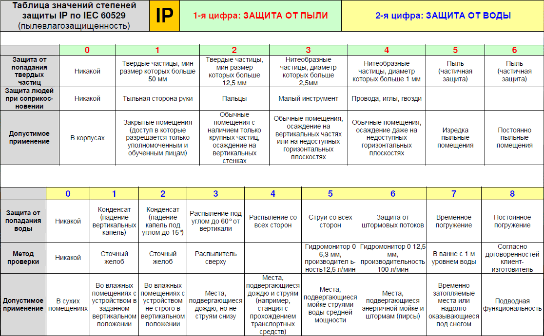 Таблица степеней защиты