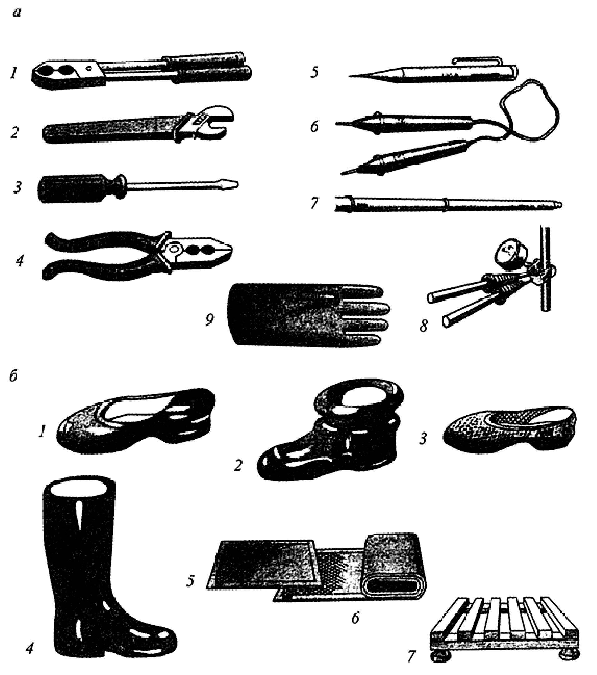 Поэтому при работе в электроустановках для персонала должны быть использованы индивидуальные средства защиты от воздействия электрического тока до 1000В и выше 1000В.