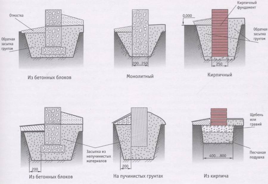 В зависимости от материала, который был выбран для возведения, фундамент бывает:
