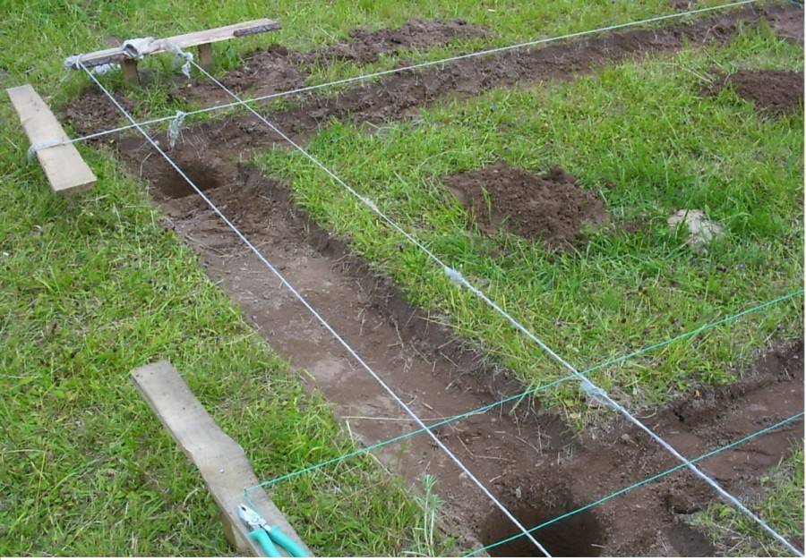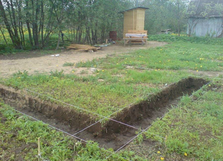 Земляные работы. Теперь нужно выкопать траншею на заданную глубину, ширина должна быть на 20 см больше расчетной, чтобы можно было установить и закрепить деревянную опалубку.