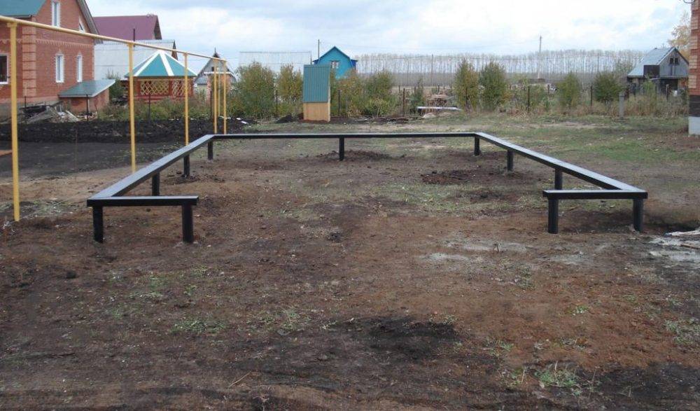 Последний этап — подготовка почвы и гидроизоляция. Участок необходимо разметить, используя для этого деревянные колышки и капроновую нить. Угол должен быть точно равен 90 градусам.