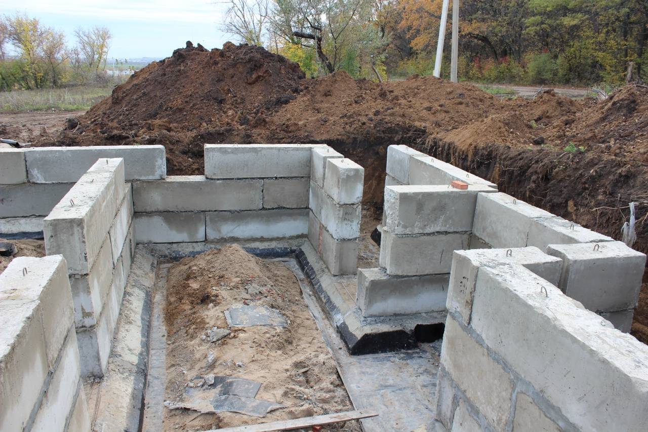 - Обустраиваются стеновые панели будущего цокольного помещения из блоков;