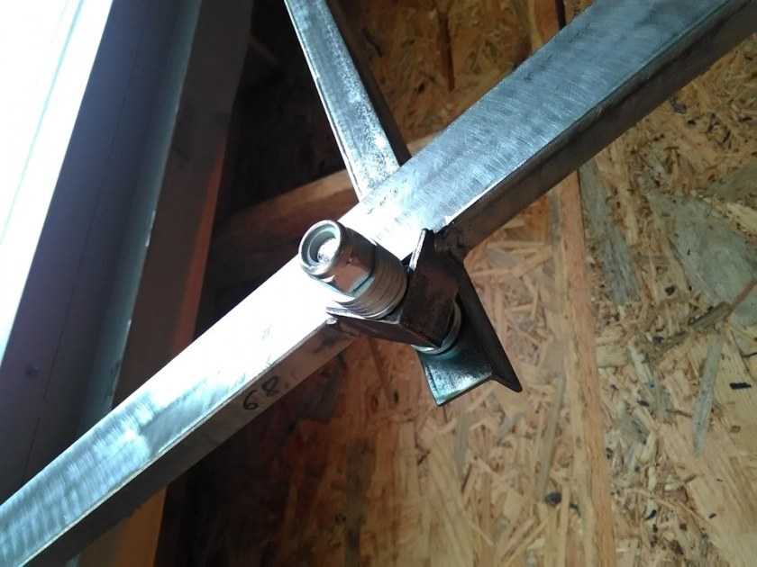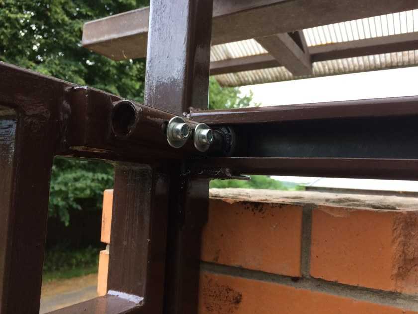 Устанавливаем створку и проверяем работу ворот. Если всё в норме — ворота легко открываются и закрываются, то снимаем створку и крепим рычаги на болтовые соединения.