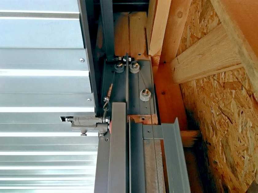 - Направляющие пазы, по которым воротная панель перемещается в свободное пространство под потолочными балками.