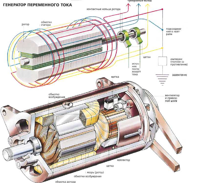 В зависимости от назначения, генератор имеет определенные особенности конструкции, но существуют два компонента, которыми обладает любое устройство, конвертирующее механическую энергию в электричество: