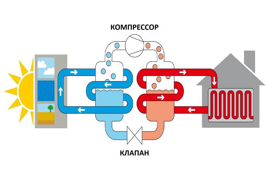 Получается, что тепловой насос отбирает тепло у всех предметов и веществ: воды, земли, воздуха. В нашей стране чаще всего используются системы, где тепло забирается с земли и передается в здания.
