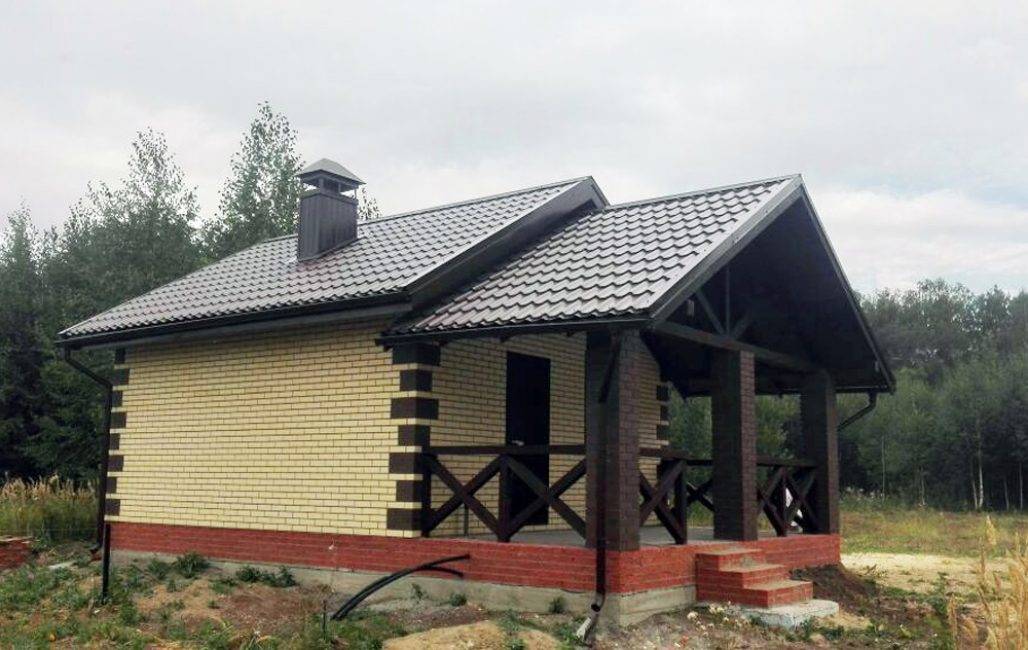 Кирпичная баня дороже, но при этом долговечнее деревянной. Баня из кирпича может быть только «белой» — кирпич имеет склонность отсыревать и разрушаться, поэтому нуждается в хорошей вентиляции. Стены такой бани обшиваются вагонкой с изоляционным слоем.