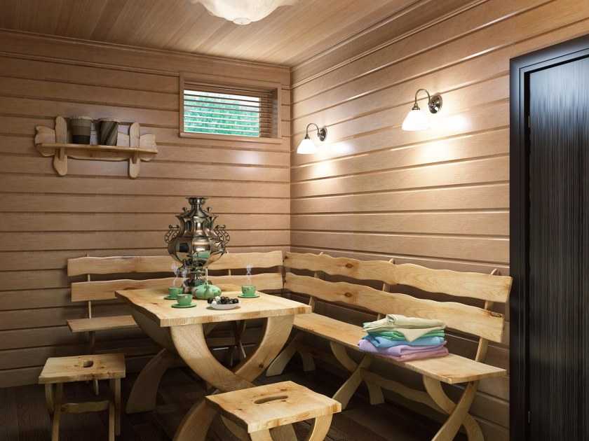 Отделка предбанника блокхаусом с тонировкой