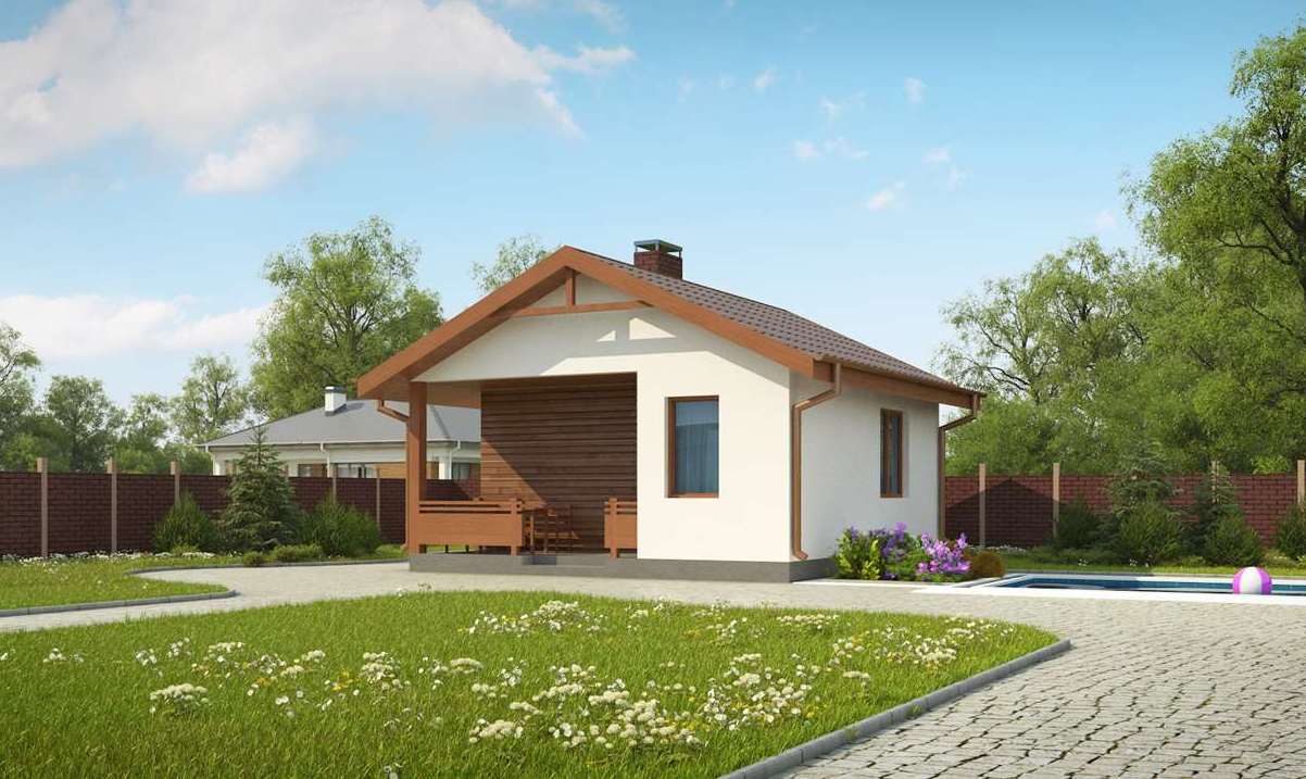 Легкий вес материала позволяет не устанавливать блоки на массивный фундамент. При укладке стен арболит смачивают водой. У него низкая гигроскопичность – если защитить блоки от прямого контакта с водой, внутрь помещения влажность с улицы не проникнет. Достаточно сделать добротную наружную отделку – штукатурку или облицовку любым материалом.