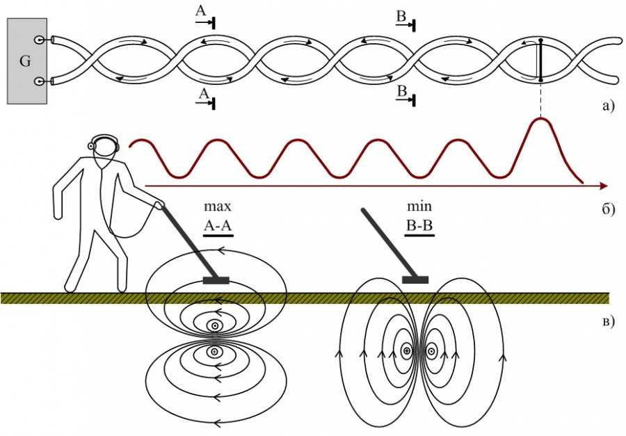 При включении самодельного детектора, в наушниках будет обнаруживаться постоянный однотонный сигнал высокой частоты, при поднесении катушки к стене в которой находится проводка под напряжением, частота сигнала будет меняться, а когда катушка будет расположена непосредственно над проводником, звук в наушниках полностью исчезнет.