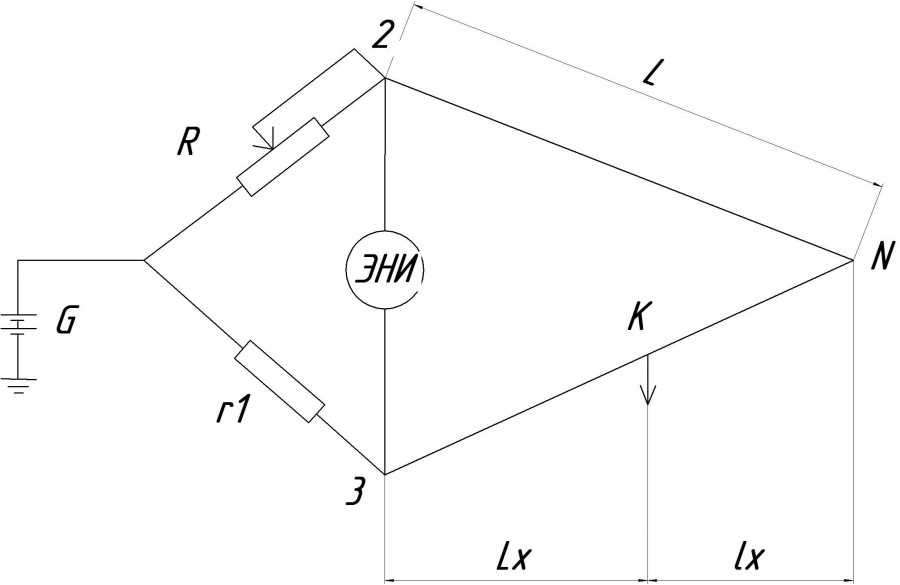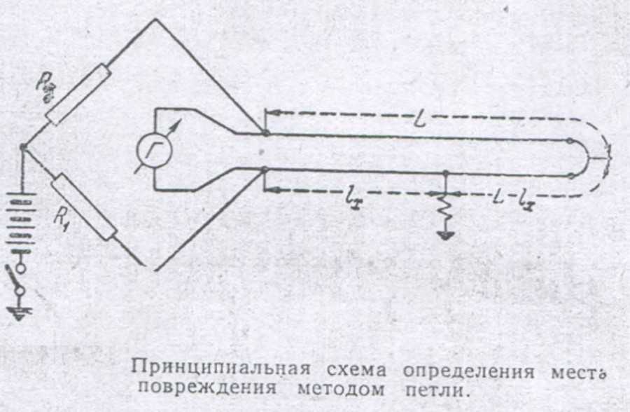 Исправная и поврежденная жилы соединяются на одной стороне кабеля петлей. На противоположной стороне кабеля устанавливают мост, регулирующий электросопротивление. Производятся замеры, и, используя формулы соотношения сопротивления, устанавливается дистанция до точки расположения неисправности.