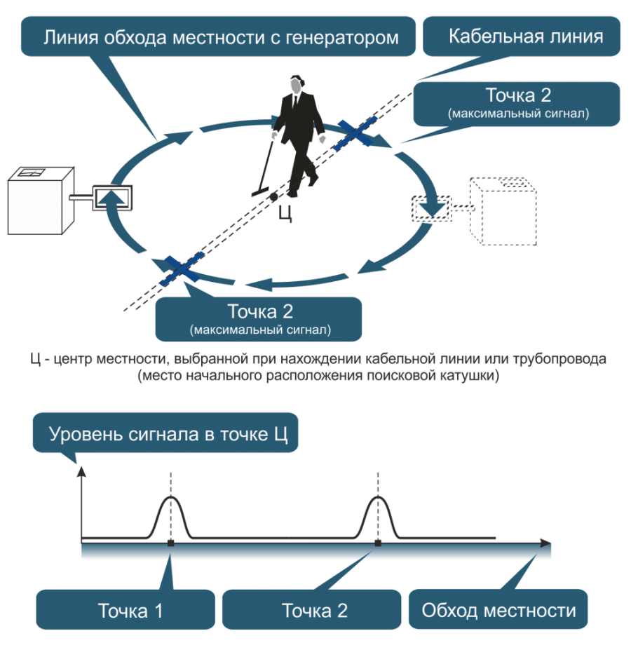 Рассмотрим теперь, как определяют участок повреждения кабеля индукционным методом, который является более точным и дает шанс установить отрезок неисправности прямо в КЛ, погрешность этого способа не превышает 50 сантиметров.