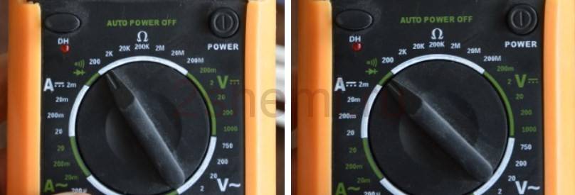 - Перед тем, как прозвонить цепь мультиметром, нужно повернуть ручку прибора в нужное положение.