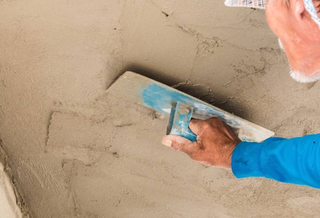 Шаг 2. Нанесение еще более сгущенного состава на застывший обрызг и дальнейшее выравнивание. Это «фундамент» покрытия, потому данный слой — самый толстый.