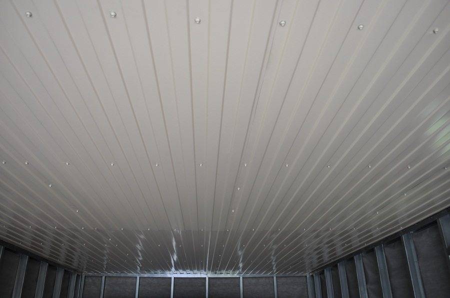 Закрыть утеплитель на потолке гаража можно теми же облицовочными материалами, которыми вы пользуетесь при обычном ремонте в квартире. Это могут быть панели ПВХ, гипсокартон, реечный потолок , как на кухне или упомянутая выше штукатурка и шпатлёвка. Всё будет зависеть от способа утепления и вашего желания.