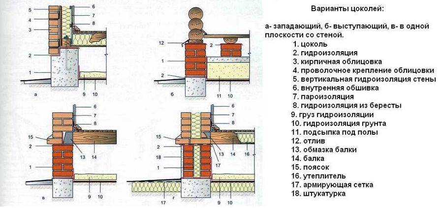 Относительно плоскости стены цоколь может быть западающим, выступающим или совпадать с ней.