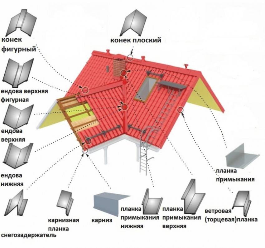 Стандартная двускатная крыша состоит из нижеследующих элементов: