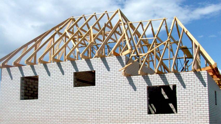 Чтобы сделать монтаж такой крыши дома, подойдет любая конструкция. При ее выборе учитывают пролет наружных стен, планировку внутренних несущих стен, перекрытия и уклона кровли.