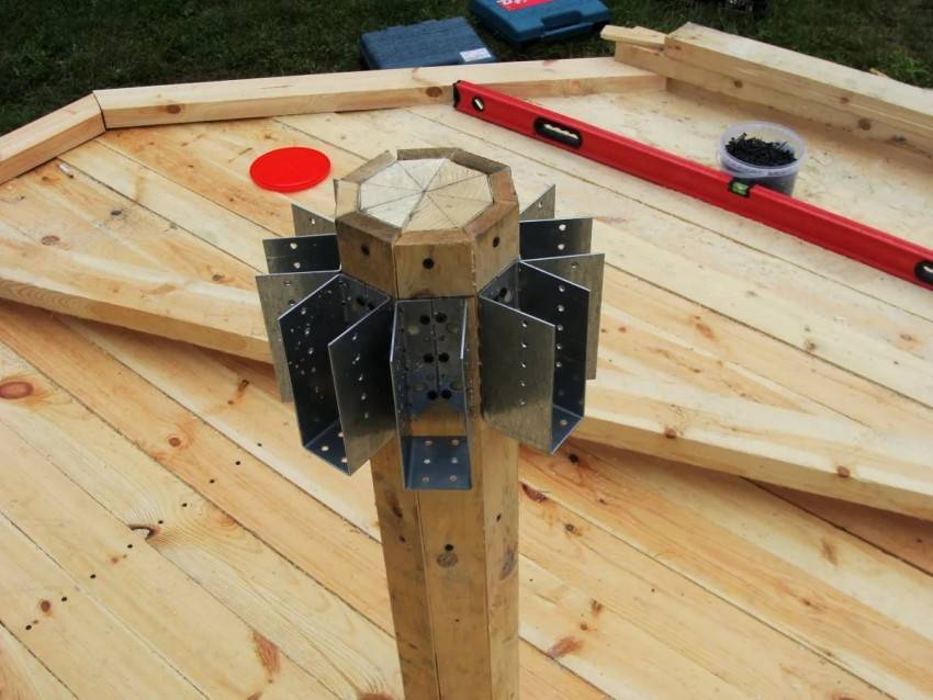 Определившись с размерами, необходимо сделать фигурные запилы на стропилах в местах их контакта с обвязкой. Стропильная нога должна жестко упираться в мауэрлат. Существует целый ряд способов крепления, следует выбрать наиболее удобный и надежный, желательно использовать металлические накладки. С тонкостями технологии можно ознакомиться по видео. Получившая стропильная конструкция в дальнейшем выступает как шаблон, а доска-опора помогает контролировать высоту установленных ферм.