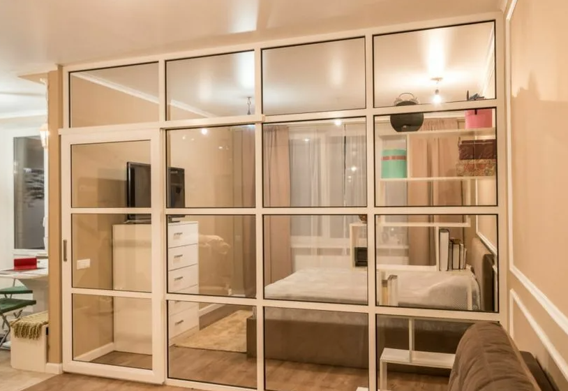 Раздвижные перегородки – это полотно из деревянного или металлического каркаса и стекла, конструкция которого и дизайн зависит от возможности используемого профиля. Межкомнатные перегородки раздвижные можно сделать рельсовыми или беспороговыми.