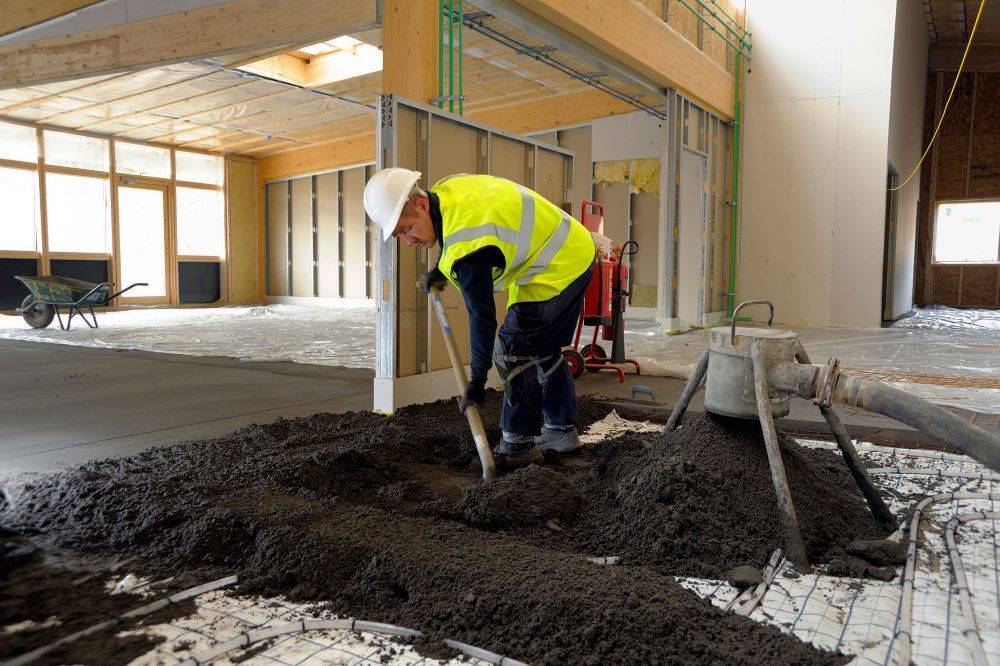 Бетонное покрытие, в основном, делают в домах с бетонными или кирпичными стенами, и приступают к его устройству после того, как выведены стены и покрыта кровля.