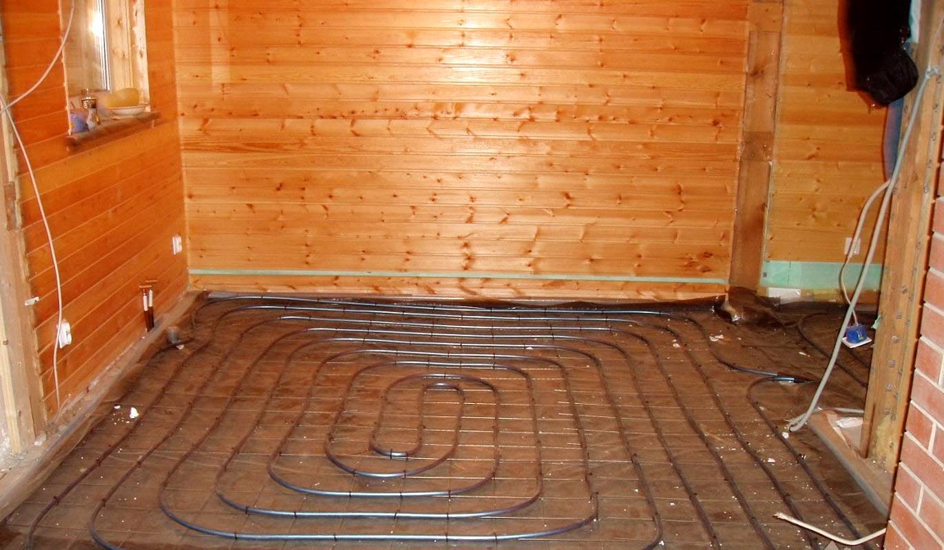 Водяной теплый пол выше остальных вариантов из-за высоты применяемых труб. Их можно запитывать горячей водой от общего нагревательного прибора. Стоит помнить о необходимости их постоянного нагрева в холодный период во избежание заморозки системы.