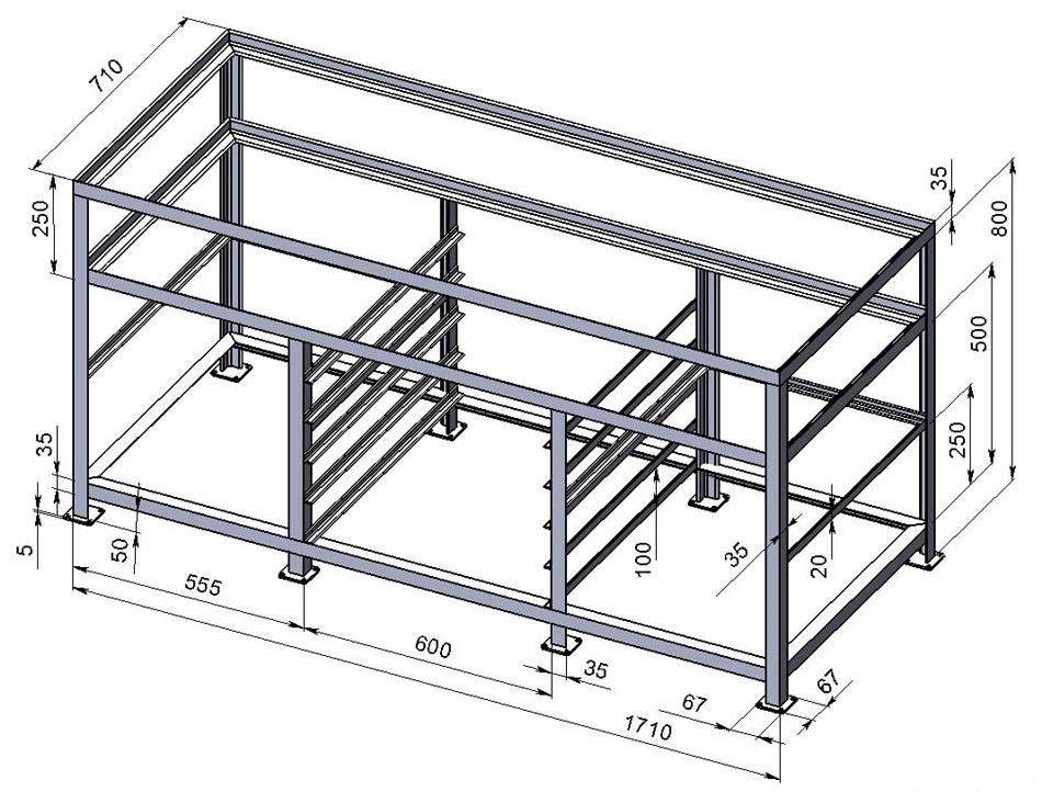 Этот вариант изготавливается из квадратной трубы и уголка. Каркас изготавливается из квадратной трубы, а уголок придаст конструкции необходимую жесткость и используется для окантовки.