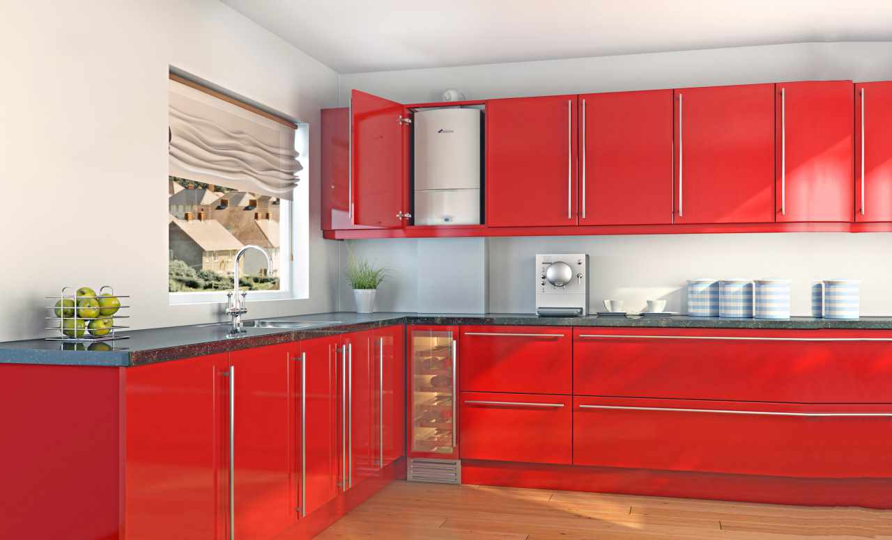 Кухни с газовым котлом: дизайн и установка шкафчика из ДСП