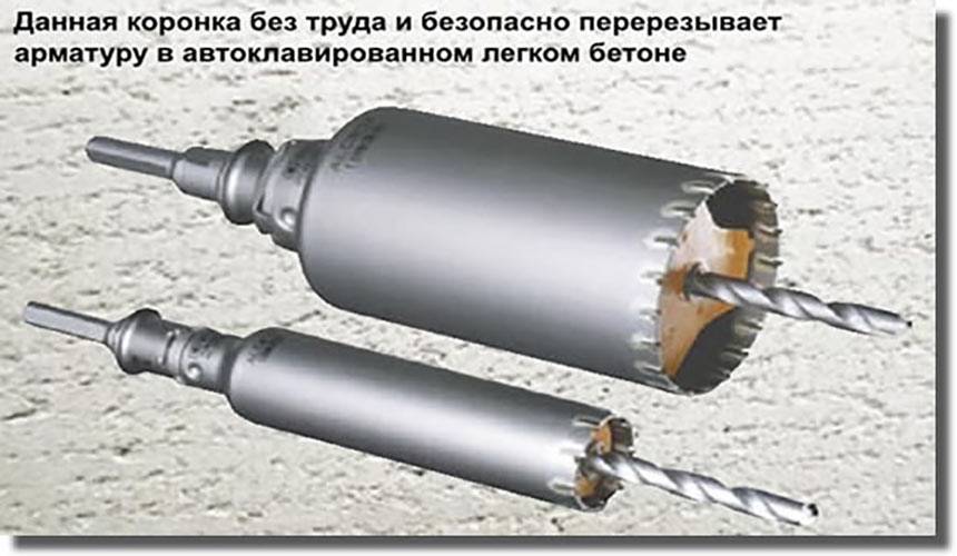 Как говорилось ранее, не всегда подготовить углубление в стене может быть легко. Но выполнение данной задачи могут облегчить алмазные коронки. Они изготавливаются из карбидно-вольфрамового сплава и алмазной пыли. Наиболее востребованы в сфере строительства два их вида: