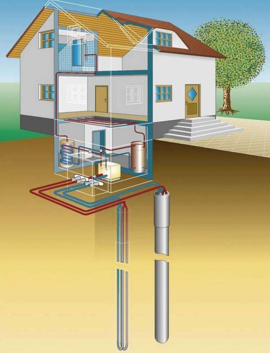 Принцип его действия такой же, как и любой холодильной машины. Он потребляет электроэнергию и преобразовывает ее в тепловую энергию. Насос отбирает тепло у охлаждаемых продуктов, а конденсатор передает его в помещение. То есть тепло берется из недр земли.